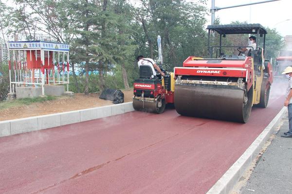 7月11日下午,攤鋪項(xiàng)目部對旅游路工程涵玉翠嶺段北半幅慢車道進(jìn)行了彩色瀝青的攤鋪施工,本次攤鋪施工在全體項(xiàng)目部人員的團(tuán)結(jié)協(xié)作下,歷時3小時順利完成。施工過程中質(zhì)檢人員嚴(yán)格監(jiān)測平整度和壓實(shí)度等質(zhì)量問題,全程質(zhì)檢跟蹤監(jiān)測,嚴(yán)把質(zhì)量關(guān)。攤鋪過程中,施工人員根據(jù)彩色瀝青的施工要求,特別注意施工過程的策劃和清潔控制,從出料、運(yùn)輸、現(xiàn)場施工中的清潔處理都做了詳細(xì)的安排和要求,攪拌站工作人員和現(xiàn)場施工人員緊密協(xié)作,圓滿完成了該段彩色瀝青的攤鋪施工。彩色的路面與旅游路周圍的青山綠水相映成趣,仿佛一條彩帶貫穿于青蔥之間,成為一道亮麗的風(fēng)景。