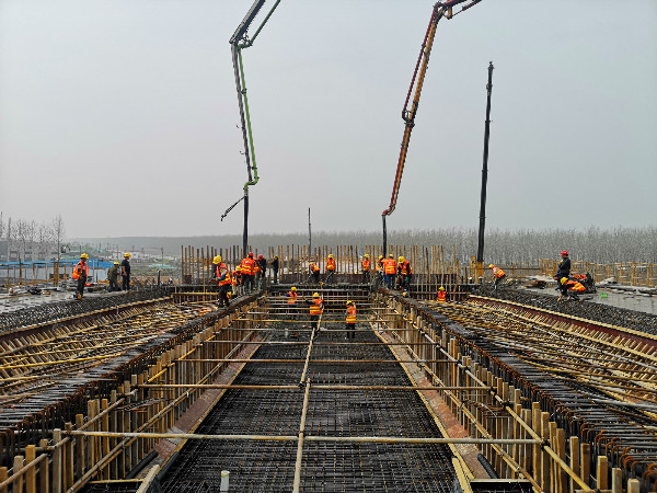 近日,匯通公司承建的沭陽快速路二期工程義烏路--慈溪路上跨橋37號墩柱混凝土開始澆筑。義烏路—慈溪路上跨橋全長1406.9米,共13聯(lián),主線橋現(xiàn)澆等高箱梁(橋?qū)?5.5米)橋墩采用雙柱式“花瓶”形,中部系梁連接。37號墩柱模板安裝冬季混凝土施工質(zhì)量控制難度大、高空作業(yè)安全風(fēng)險系數(shù)高。為順利完成第一根墩柱施工,項目部在施工前做了精細的施工準備,制定周密的質(zhì)量控制措施,確保施工作業(yè)平臺安全穩(wěn)固。施工過程中,技術(shù)、質(zhì)檢、材料、安全部門人員全部到位,確保施工過程安全、材料供給及時、質(zhì)量達到要求。在各部門的密切配合下,37號墩柱順利完成澆筑。37號墩柱混凝土澆筑后續(xù)施工中,項目部將繼續(xù)保持工作熱情,保證