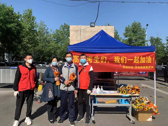 “高三考生們,我們一起加油!” 在領秀城秀柏社區的防疫志愿服務站,一條大紅色的條幅,一朵朵象征著太陽與光明、生機與活力的太陽花在陽光的照射下格外絢爛醒目。今天是五一勞動節也是高三考生因疫情封閉后第一天復課的日子。 在這個特別的節日里,領秀城秀柏社區的防疫先鋒隊第一小組組長榮峰提前一天就定購好了100朵鮮花,一大早,當高三學生走到小區門口,志愿者們就將一朵朵鮮艷的太陽花和祝福卡送到學生手中,“想起了向日葵就想起了陽光,微笑和美好常在,我們一起加油!” “叔叔,太謝謝你們了,你們在加班加點為我們服務,還給我們送花,真是讓我倍受鼓舞。”“太感謝你們了,謝謝志愿者們這些日子以來對我們